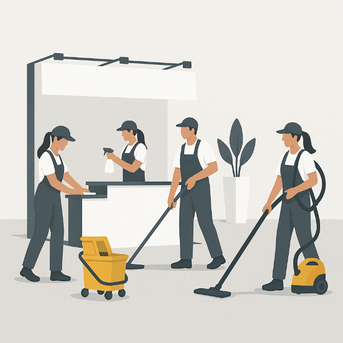 Si tratta di un servizio di pulizia personalizzata che sarà svolta entro le ore 19.00 dell'ultimo giorno di allestimento.