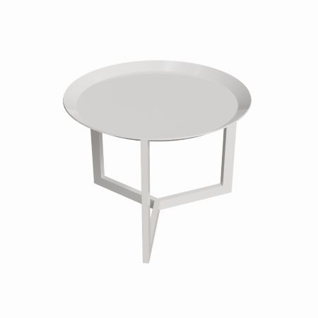 Tavolino rotondo dal design essenziale e contemporaneo. Il piano con bordo leggermente rialzato unisce estetica e funzionalità. La struttura in metallo, sottile e geometrica, dona leggerezza visiva all’insieme. La finitura monocromatica bianca lo rende estremamente versatile, perfetto per ambienti minimal, lounge o spazi espositivi eleganti.