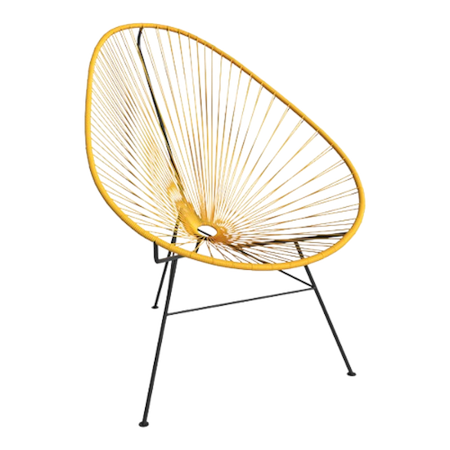 Sedia lounge Acapulco gialla con struttura nera, ideale anche per un uso in esterno